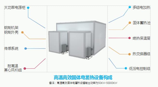 固体电蓄热设备在夜间将廉价的 低谷电能转化成热能进行储存,在白 天向用热单元供热,也可在夜间蓄热 的同时向用热单元供热。固体电蓄热 设备的储存效率可达到98%,储热介 质的工作温度范围可在80~850℃之 间。可根据用户实际供电情况选择 0.4kV、10kV、35kV、66kV设备电压 等级,按用户的实际供暖需求进行设 备定制。
