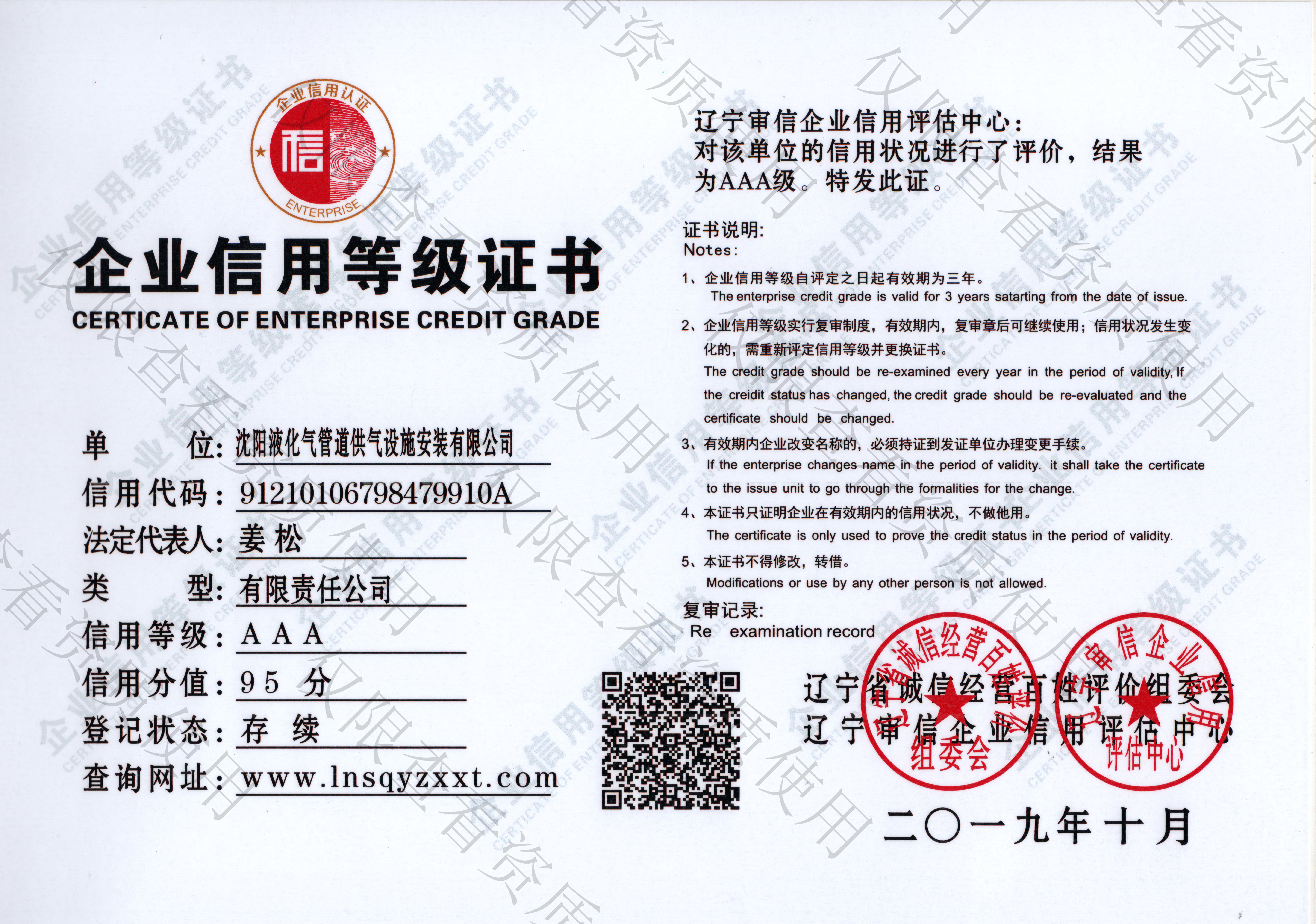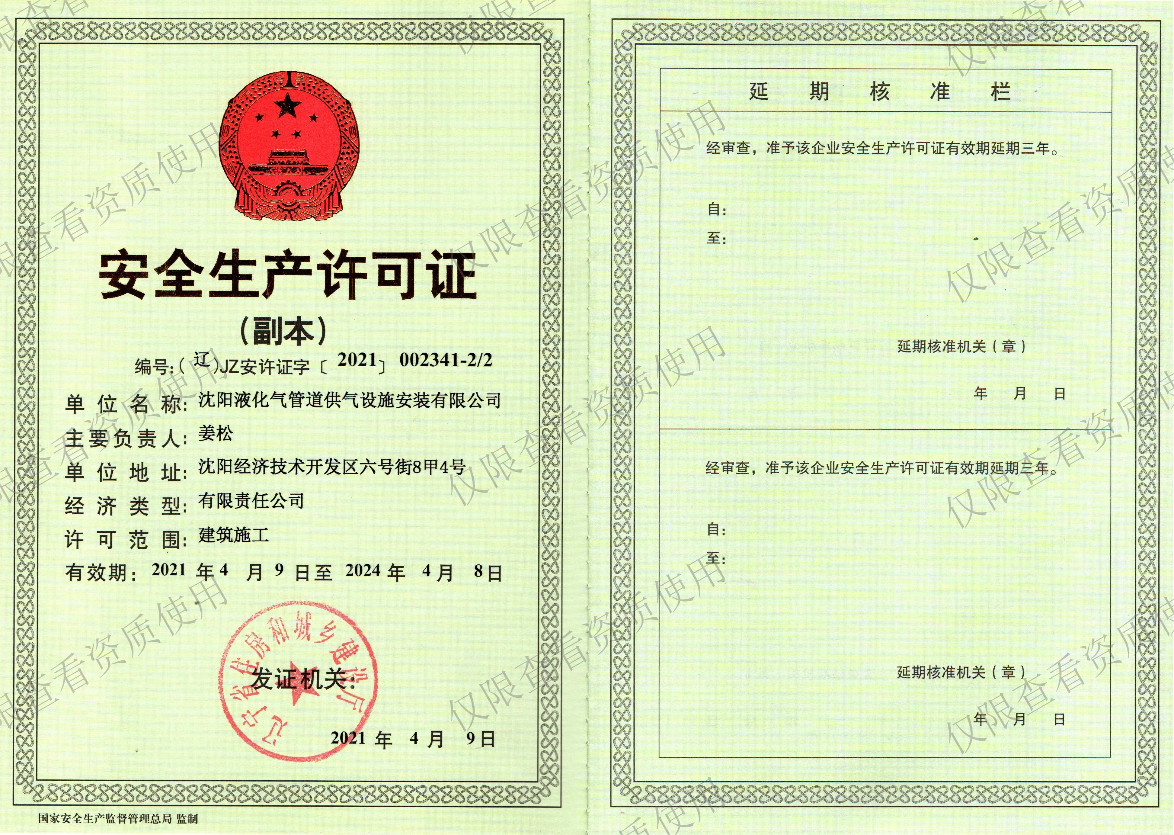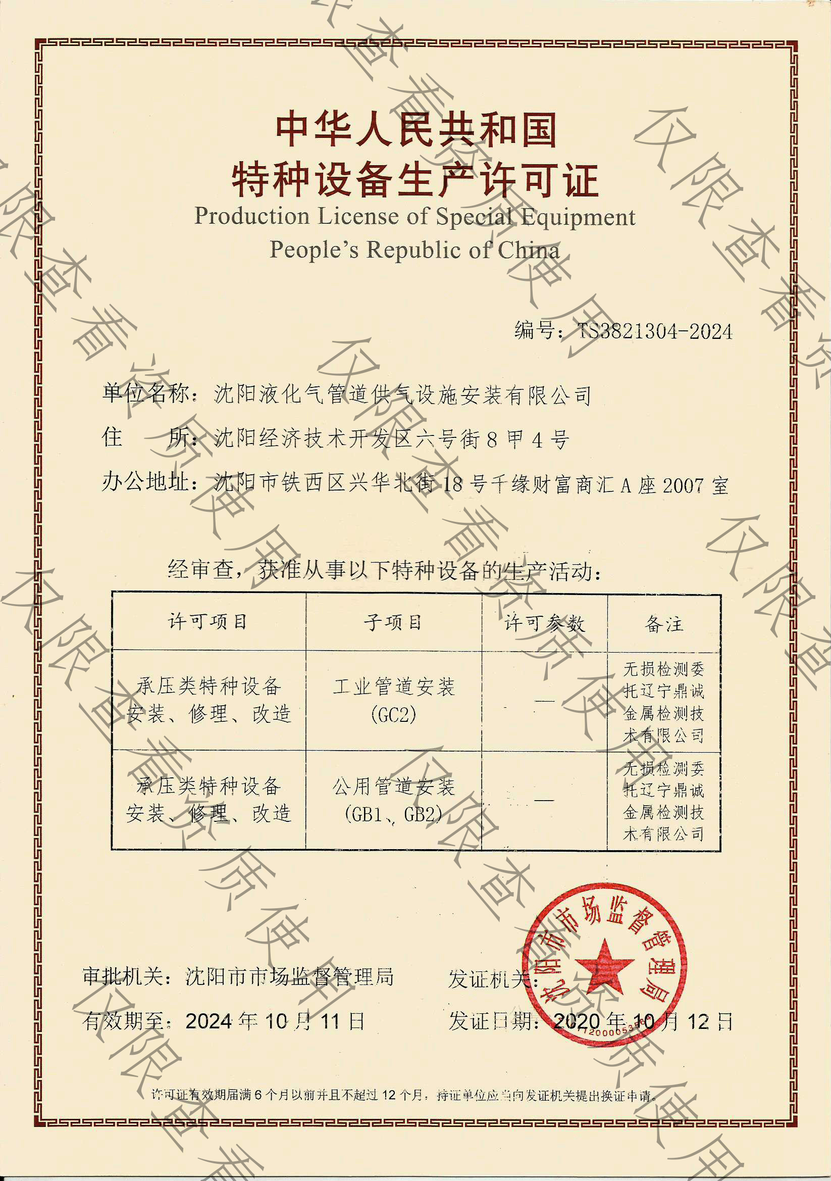 沈阳液化气管道供气设施安装有限公司成立于2007年04月19日,注册资金1000万元,公司总部位于沈阳市铁西区,办公面积1000多平方米,是东北地区最具专业性的机电设备安装公司之一。本公司持有建筑机电安装工程专业承包资质,特种设备生产许可证,GC2、GB1、GB2压力管道安装许可证,锅炉安装许可证,安全生产许可证,AAA级企业信用等级证书等一系列资质证书。公司于2021年顺利通过ISO9001:2015质量管理体系认证,ISO14001:2015环境管理体系认证,GB/T45001-2020职业健康安全管理体系认证,并持续运行保持。